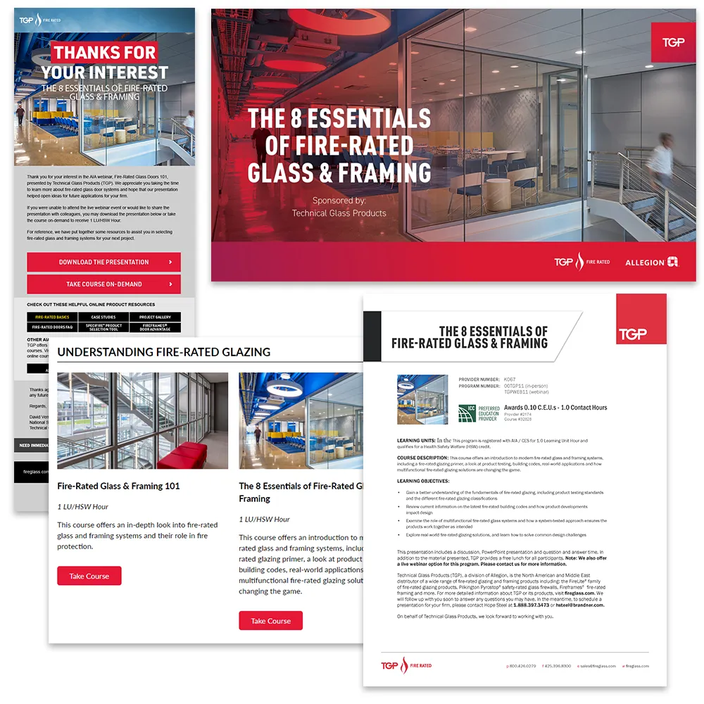 Throughout the year, the TGP sales team delivers AIA-registered educational presentations to architects. In 2022, TGP sales representatives reached more than 2,532 architects and in June, a virtual market-wide presentation was given through a partnership with Architectural Record called, “The 8 Essentials of Fire-Rated Glazing.”
